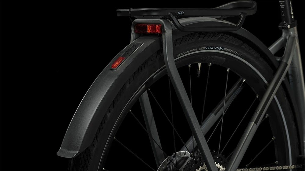 The Integrated Carrier 3.0 is the next level in system integration: from the side, it’s hard to tell where the luggage carrier ends and the mudguard begins. But it doesn’t just look good, it’s also incredibly strong and rigid. With an integrated spring clamp and CUBE Rilink ready adaptor for mounting bags and baskets, it transforms your CUBE into an adaptable and versatile load carrier.