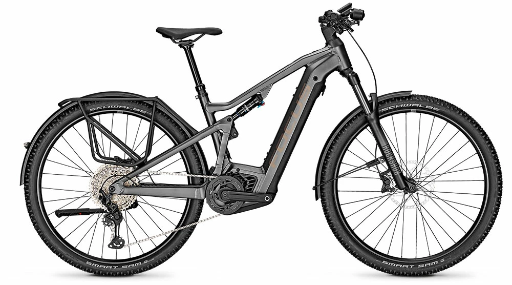 The FOCUS THRON² EQP offers maximum versatility. With 120 mm / 130 mm F.O.L.D. travel and 29″ wheels, the THRON² is at home on the trail and gets even more out of every ride thanks to the Bosch Performance CX (Smart System) e-drive with 750 Wh. With luggage rack, mudguards, kickstand and light, this true touring bike opens up a whole new range of possibilities, from bikepacking to commuting.