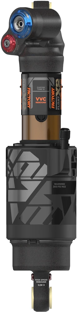 L’amortisseur Fox Float Racing X2 Factory primé maintenant avec réglage de la compression à haute et basse vitesse, ainsi que de la détente à haute et basse vitesse. La meilleure technologie que FOX puisse offrir est disponible dans les modèles Factory Series avec un revêtement Kashima original, doux comme du beurre et extrêmement durable.