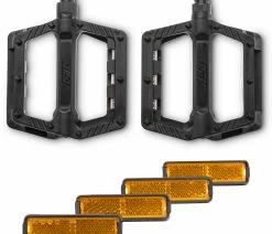 Les robustes pédales Cube RFR Flat HQP Race avec réflecteurs intégrés sont fabriquées en plastique solide et offrent une excellente adhérence grâce aux pins anti-slip intégrés.