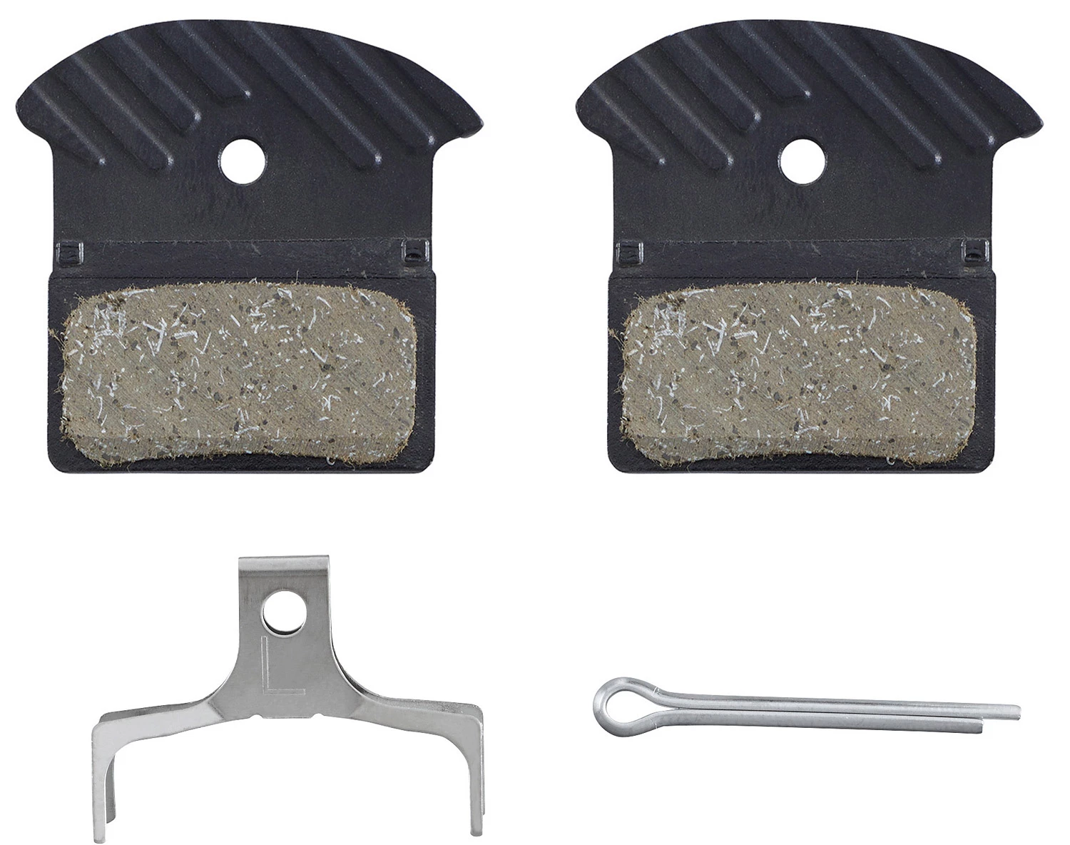- 1 paire de plaquettes de frein Shimano J05A-RF, ressort de rappel et goupille de sécurité inclus